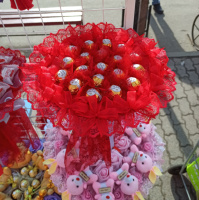 Букет із цукерками Ferrero Rocher у формі серця на день закоханих Цукерки - 20 шт. Висота – 30 см. Діаметр - 31см.
