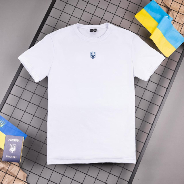 Футболка Pobedov Peremoga - Герб синя вишивка Білий
