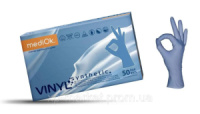 Перчатки VINIL-ВИНИЛОВЫЕ (СИНИ без пудры) 4,5грамм уп.50пар mediOk М