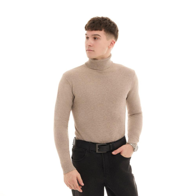 Приталений силует елегантно підкреслює фігуру, а високий комір надає образу благородності та водночас надійно захищає від прохолоди. Довгі рукави додають відчуття затишку, роблячи цей гольф ідеальним варіантом для осені та зими.