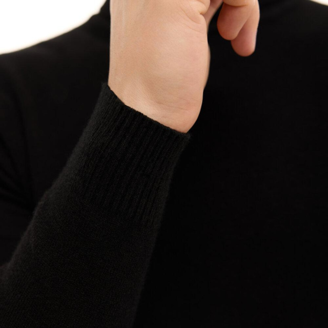 Приталений силует елегантно підкреслює фігуру, а високий комір надає образу благородності та водночас надійно захищає від прохолоди. Довгі рукави додають відчуття затишку, роблячи цей гольф ідеальним варіантом для осені та зими.