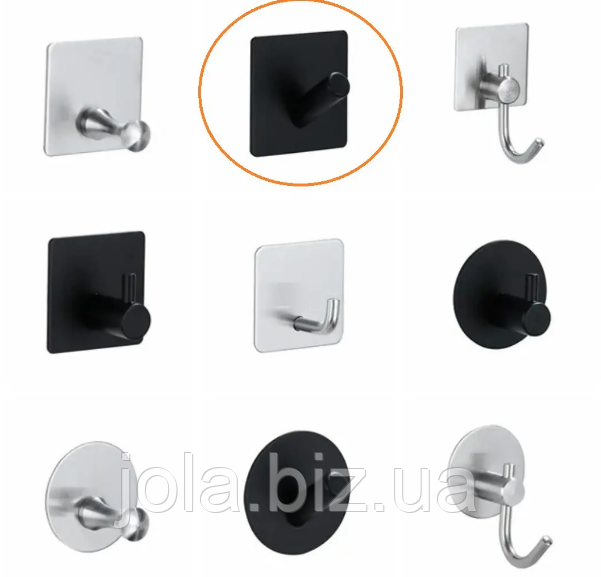 Металлический самоклеющийся крючок черный квадрат - крепление на липучке для ванной, кухни и шкафа, Дніпропетровська область